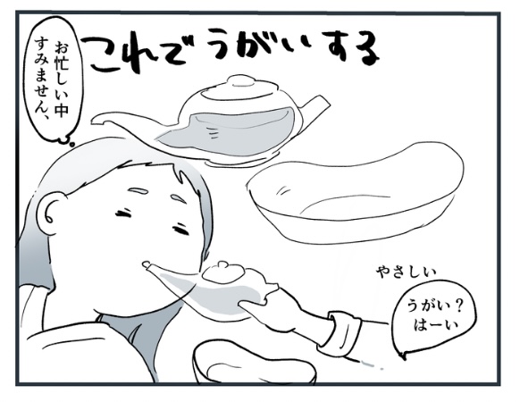 喉の痛みもあり、うがいを何度もさせてもらいました。