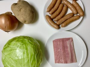キャベツ➕玉ねぎ➕じゃがいも➕ベーコン➕ソーセージ