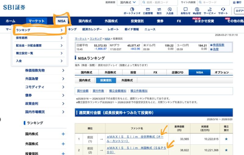 簡単な買い方は<NISA>で<ランキング>を選択して