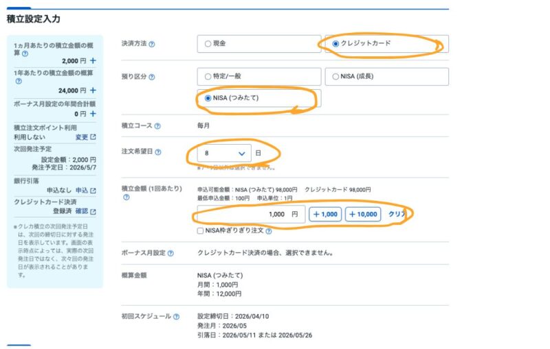 他の設定を変えずに積立金額のみ増やします