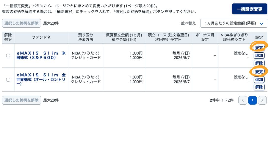 私はつみたて枠を増やしたいので<変更>ですね